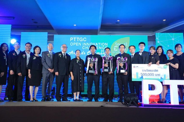 On 26 May 2017, the Photocat team composed of Dr. Surawut Chuangchote (KMUTT), Prof. Navadol Laosiripojana (JGSEE-CEE), Dr.Verawat Champreda (BIOTEC) along with JGSEE students, including, Ms. Kamonchanok Roongraung, Ms. Nattida Srisasiwimon and Ms. Oranoot Sittipunsakda won the PTTGC Open Innovation Challenge 2016: “Smart-Eco Innovation”. The award they received includes a royal trophy from HRM Princess Maha Chakri Sirindhorn and a 500,000 THB cash prize. This award relates to their innovation titled “Upgrading Sugar to High Value Products and Chemicals by Green Technology”. In this regard, the team proposed an innovation to upgrade cane sugar to xylitol, a high value sugar acid that can be used in replacement of sugar. The upgrading of sugar and biomass is part of the JGSEE-NSTDA Integrative Biorefinery Laboratory (IBL). This collaborative work is now extended to other laboratories, including, the Advanced Materials for Energy and Environmental Technology Lab.